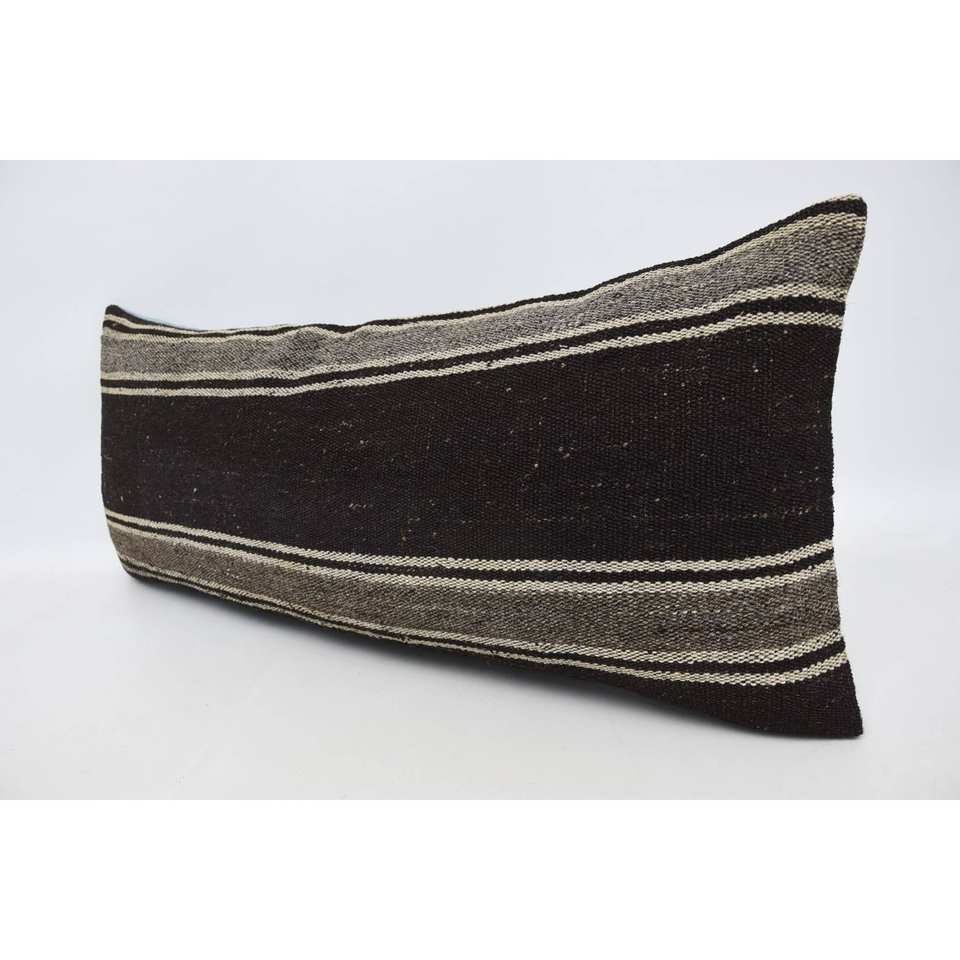 Rustic Comfort and Timeless Charm 16x36 Inch Brown Striped Wool Pillow Woven with Vintage Pattern
