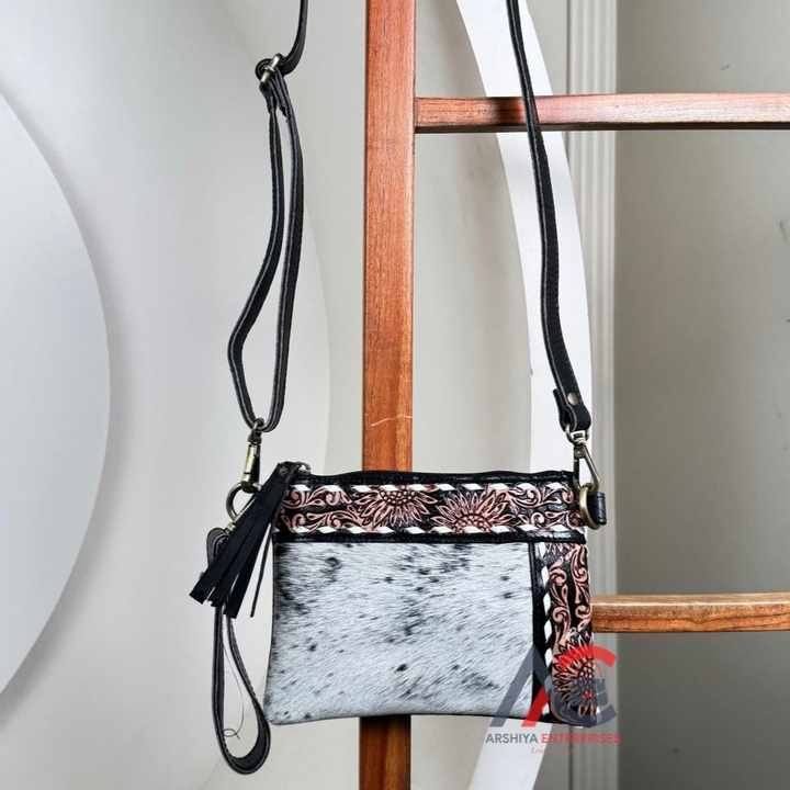 Hand Tooled Cowhide Fashionable Crossbody Bag