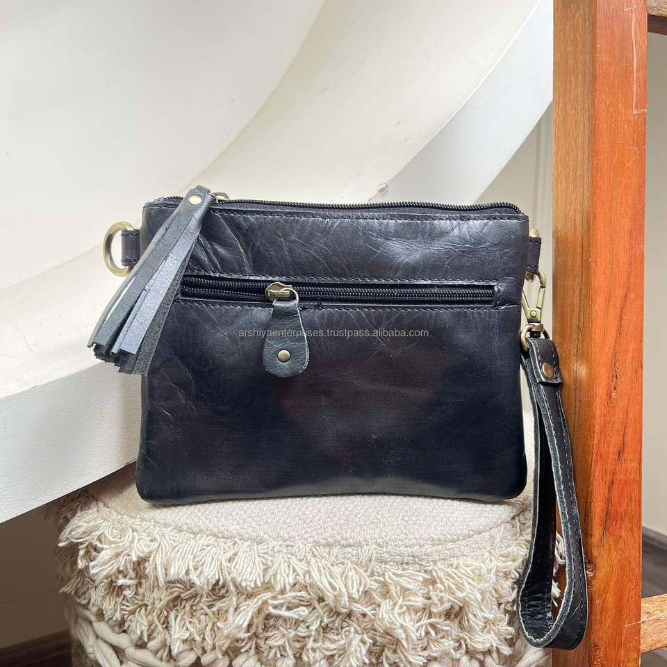 Rustic Cowhide Leather High-Quality Wristlet Handbag Custom Hand Tooled Leather Small Clutch Crossbody Shoulder Bag for Women's