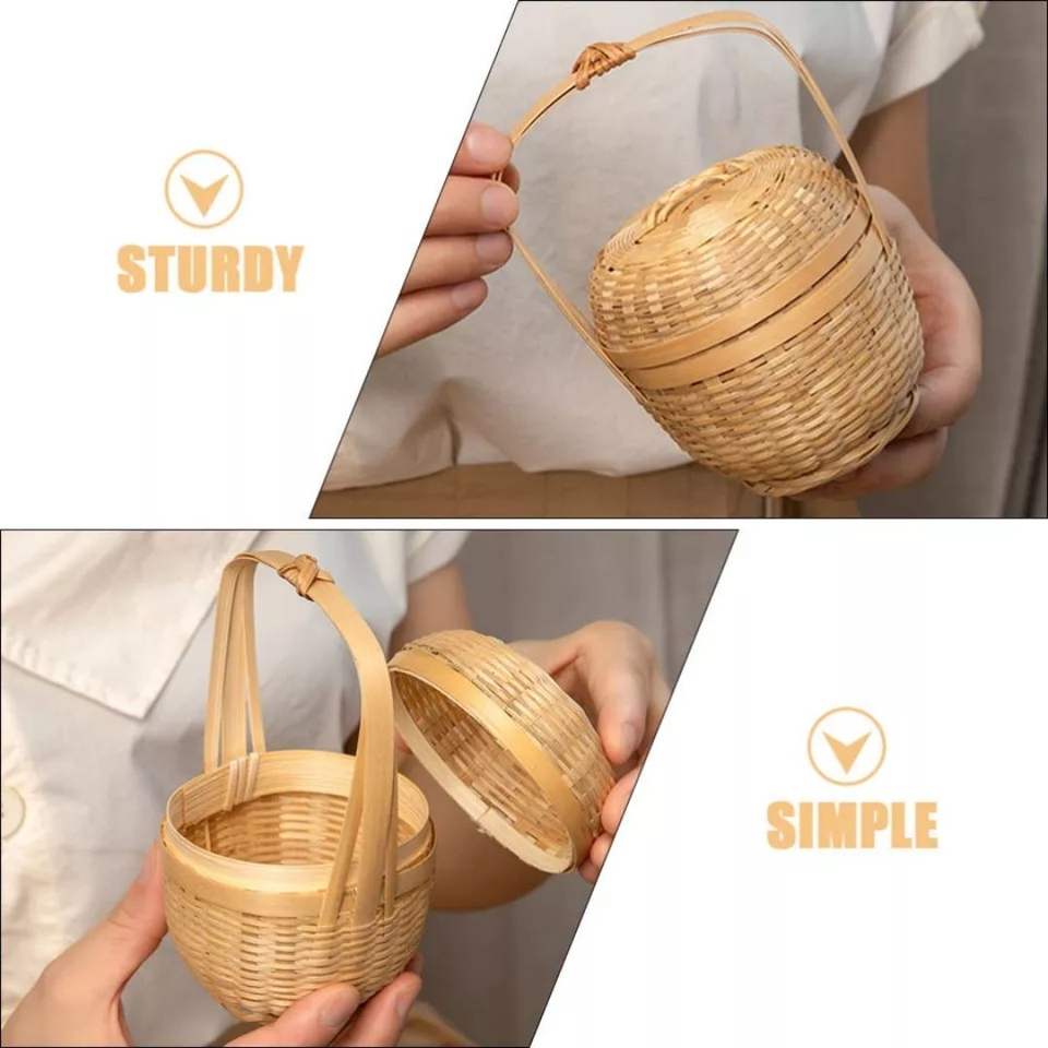 Rustic Design Natural Materials Bamboo Fruits Picking Basket with Lid and Handle for Present Handicraft From Vietnamese Supplier