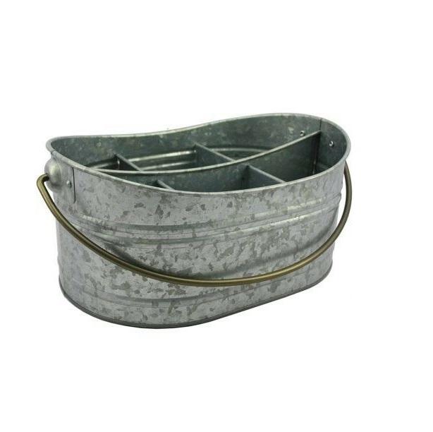Rustic Farmhouse Galvanized Metal Utensil Caddy Wooden Handle Kitchen Restaurant Outdoor Dining Cutlery Chopping Blocks.