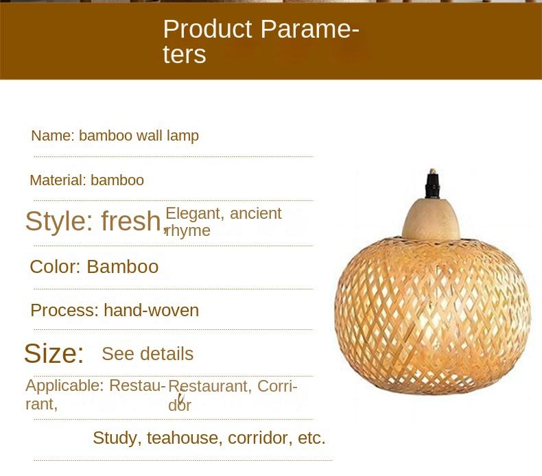Rustic Farmhouse Mounted Cord Hanging Pendant Bamboo Lantern Sconces Wicker Plug in Living Room Bedroom Kitchen Wall Lamp