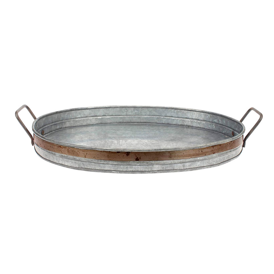 Rustic Farmhouse Oval Serving Tray Galvanized Metal for Home Office Party Wedding Spa Serving Jumbo Serving Tray