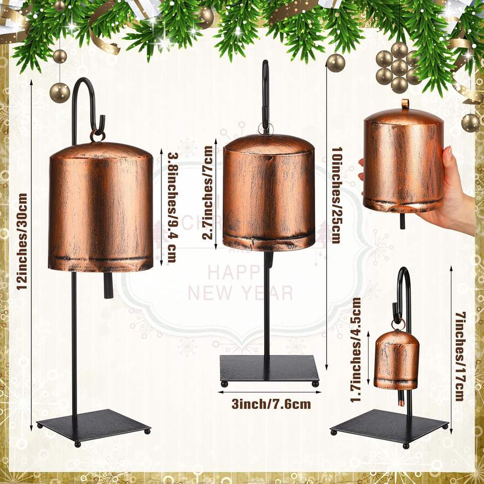 Rustic Gold Christmas Bells Painted Festive Wall Decor Farmhouse Style Hanging Bell Ornaments Holiday GIFT