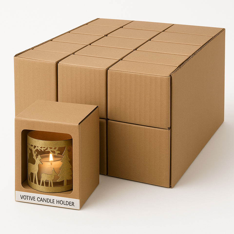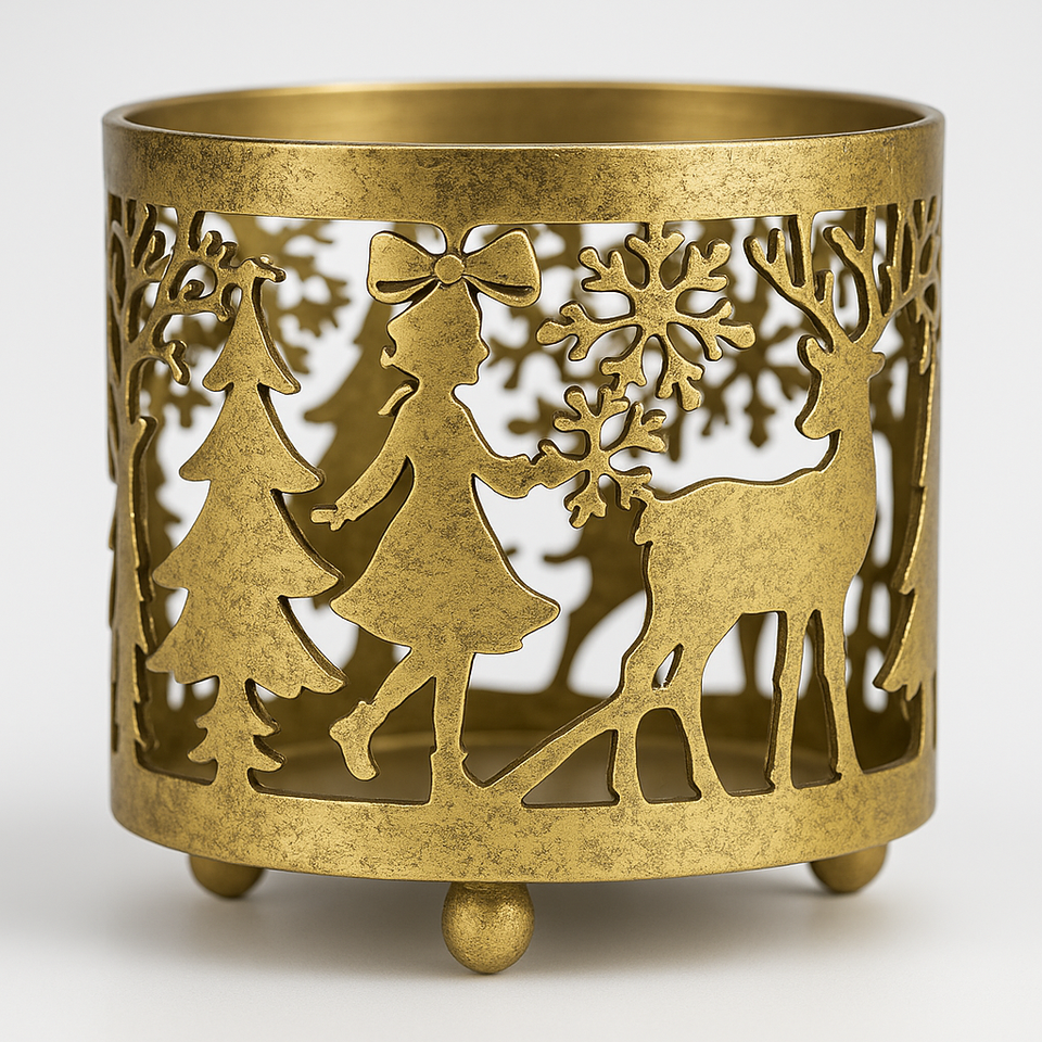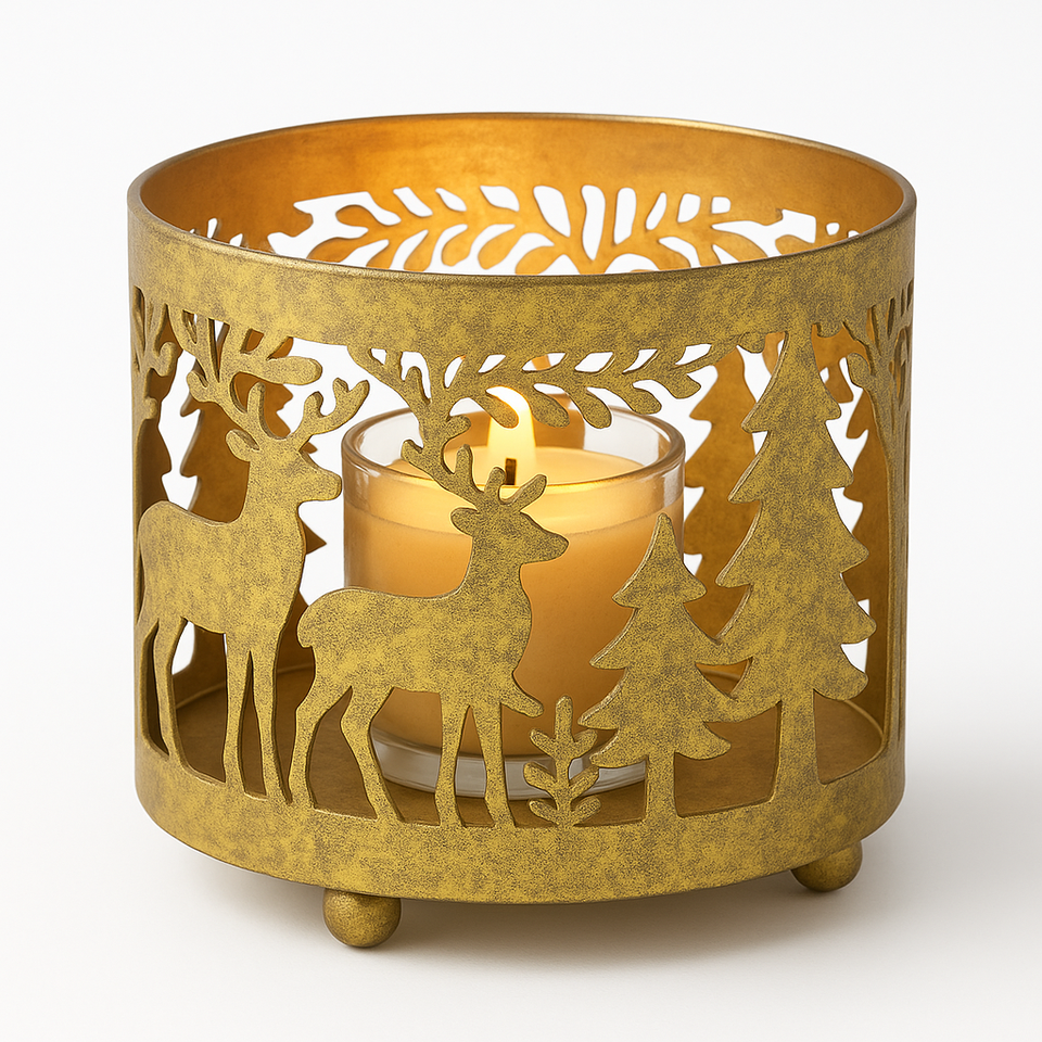 Rustic Gold Reindeer and Forest Metal Votive Candle Holder Flameless Home Decoration for Christmas
