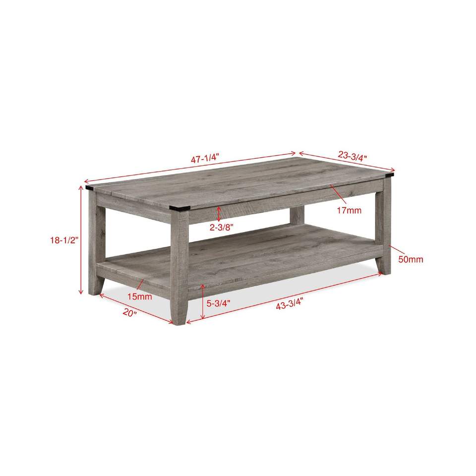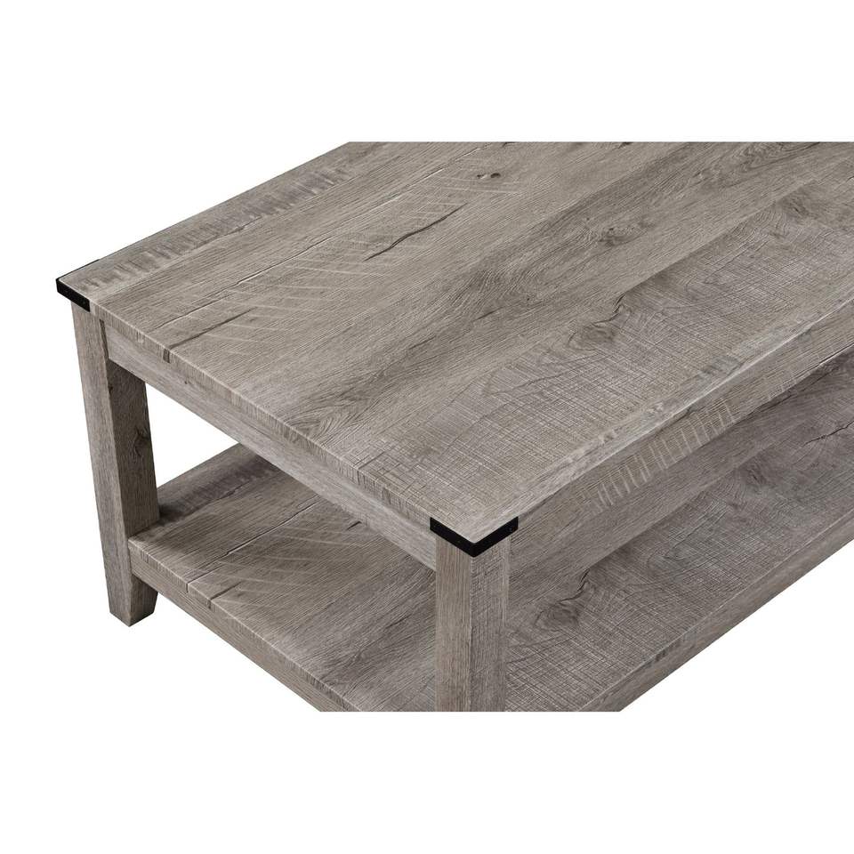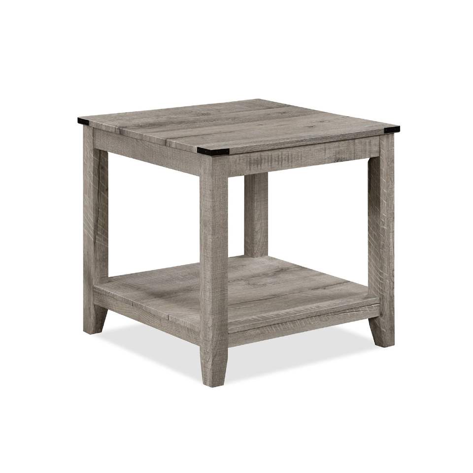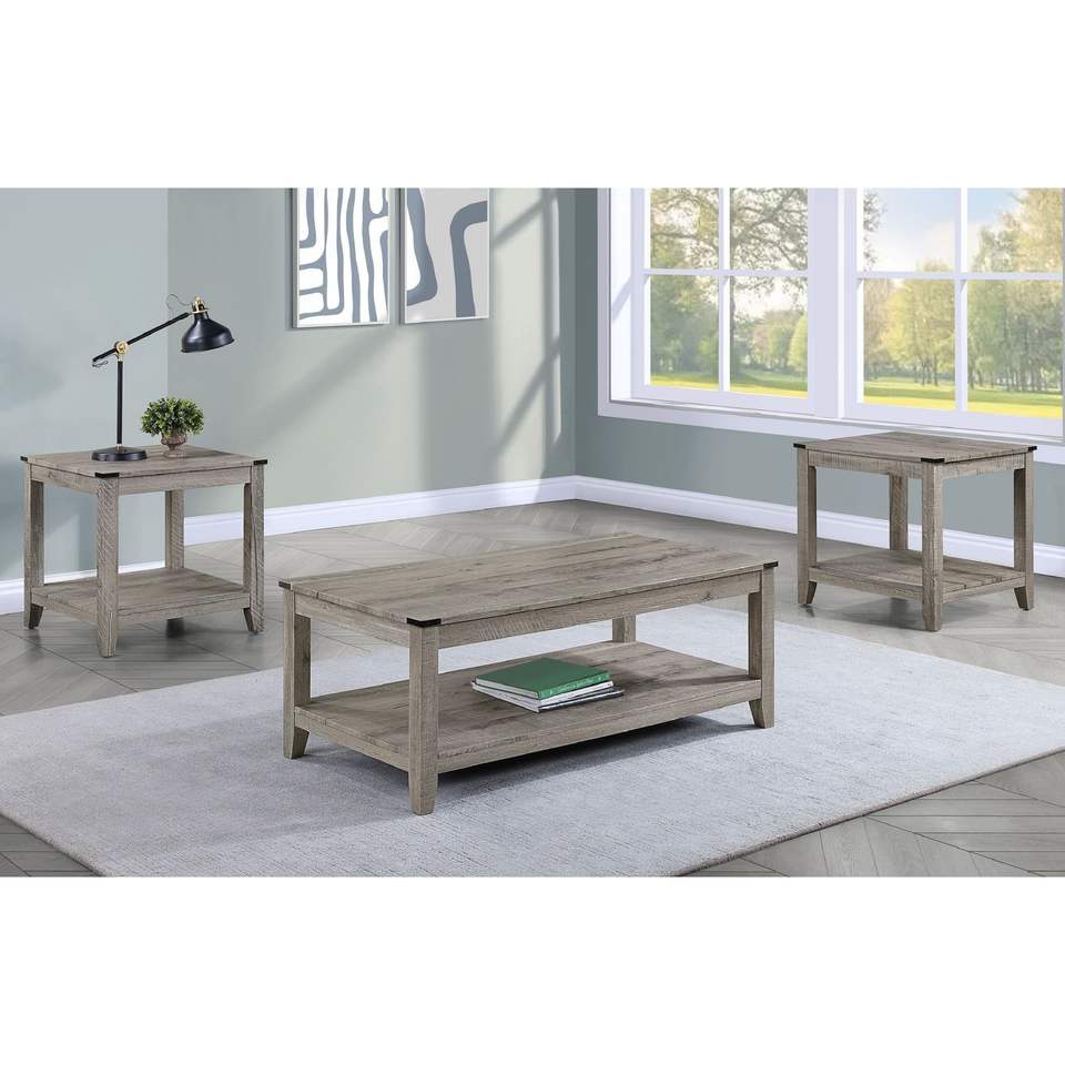 Rustic Gray Brown Wooden Rectangular Coffee Table with Two Matching Square End Tables 3 Piece Cocktail Set for Living Room