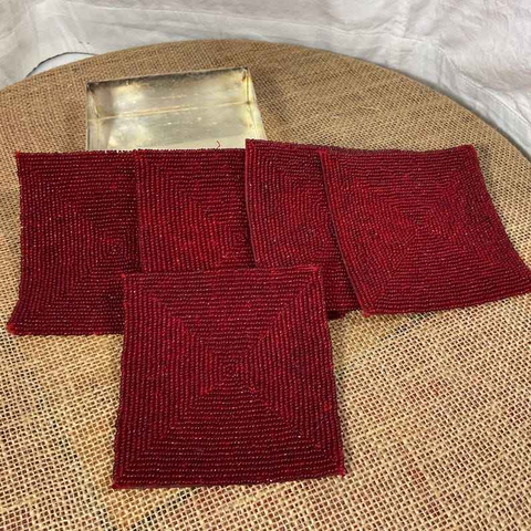 Rustic Hand Beaded Glass Coasters Heat Resistant Artisan Craft for Dining Table Mats & Pads