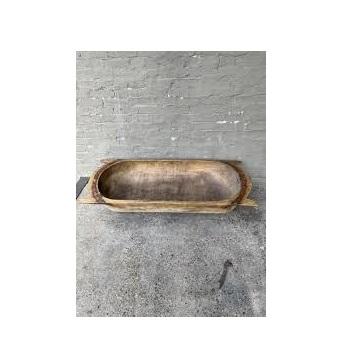 Rustic Hand-Carved Paulownia Wood Dough Bowl Antique Large Decorative Wooden Bread Bowl Farmhouse Style Long Oval Fruit Bowl