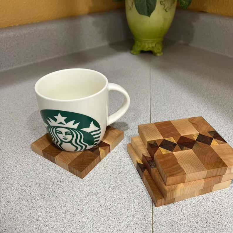 Rustic Handmade Wooden Bark Edge Coaster Set, Natural Tree Slice Stone Drink Pads for Events, Weddings and Country Decor