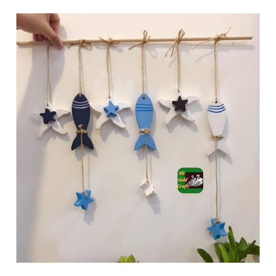 Rustic Handmade Wooden Fish Decoration for Living Room Office Desk Tabletop Shelf Feng Shui and Nautical Decor