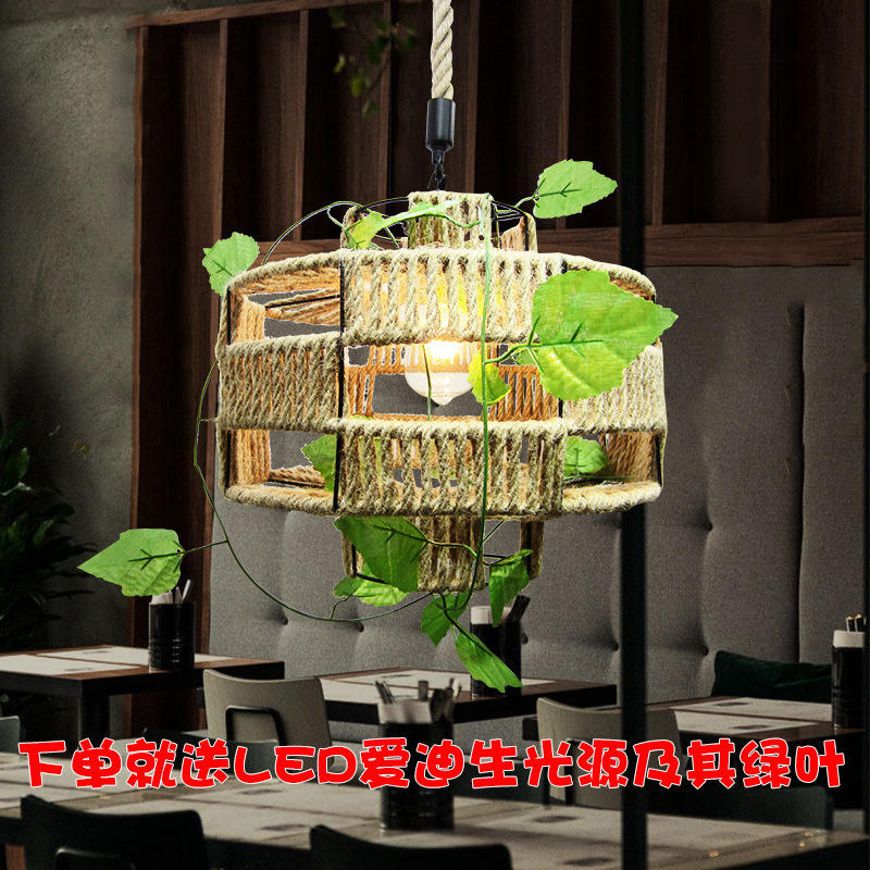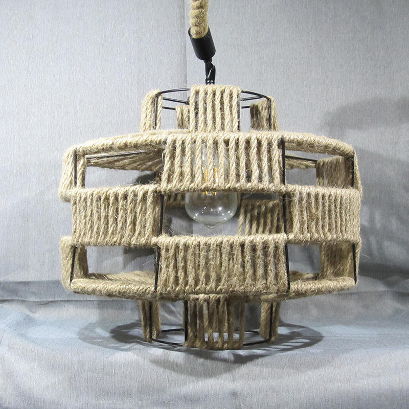 Rustic Hemp Rope Chandelier Round E27 Led Edison Bulb For Dining Room Cafe Bar Decorative Pendant Light