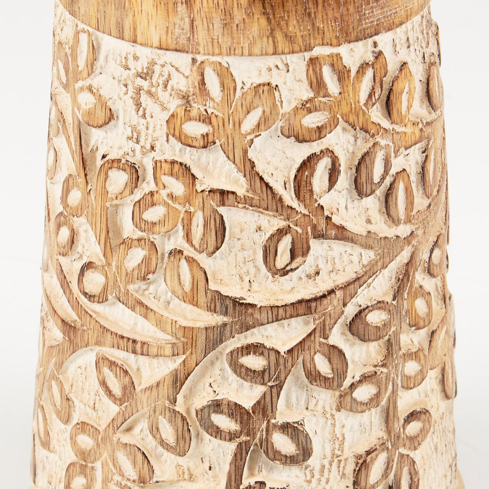 Rustic Mango Wood Candle Holder Vintage Floral Carved Pillar Stand for Living Room Bedroom Table Wedding Decoration