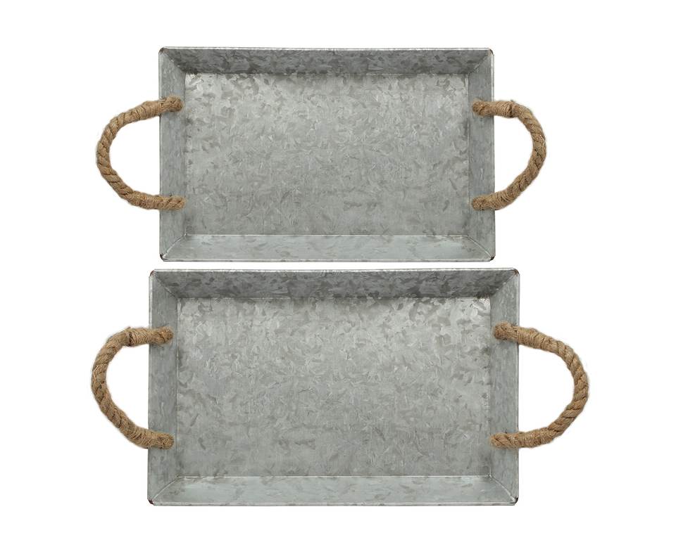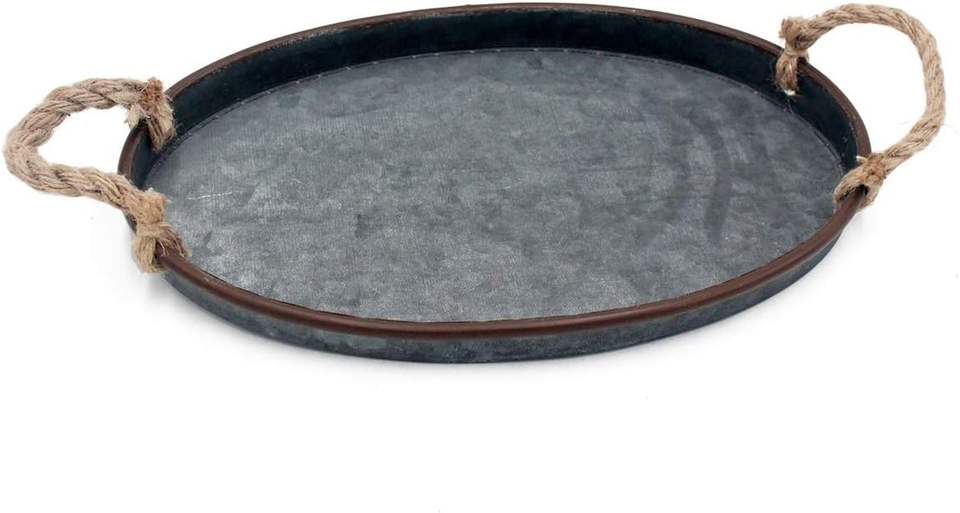 Elegant Rustic Metal Galvanized Serving Tray with Rope Handles Country Style for Home or Outdoor Use