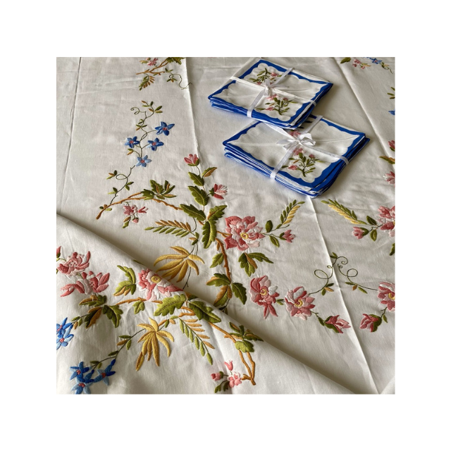 Rustic Modern Silky Half White Laced 100% Cotton Embroidered Beige 8ft Tablecloth for Trendy Home Lightweight Quick Dry Features