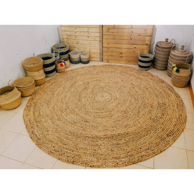 Rustic Natural Water Hyacinth Rug Carpet Round Handwoven for Bedroom