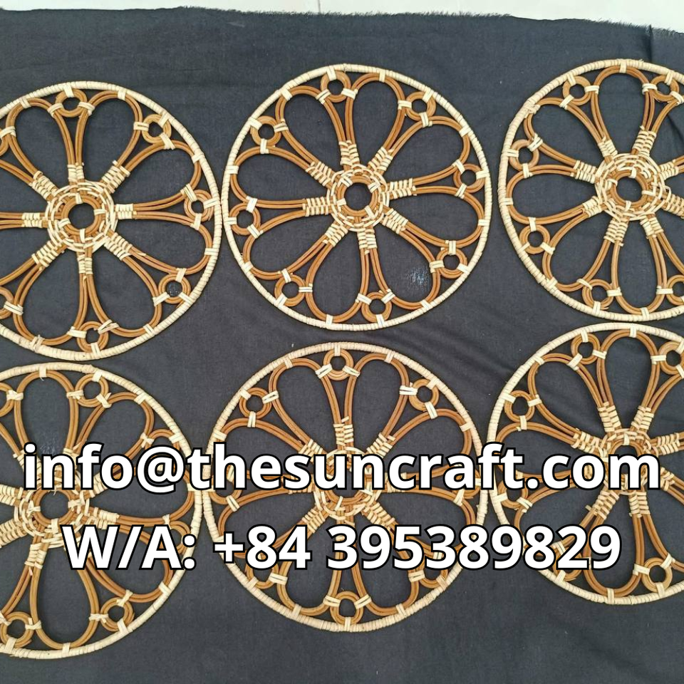 Rustic Rattan Table Mat Hand-Made Round Placemat for Country Style Home Decor Durable Heat Insulation Underplate