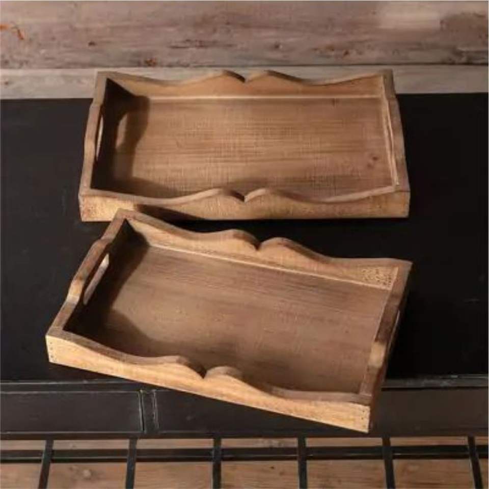 Rustic Rectangular Mango Wood Serving Tray Set with Cutout Handles Decorative Farmhouse Breakfast Tea Tray for Home Decor Table