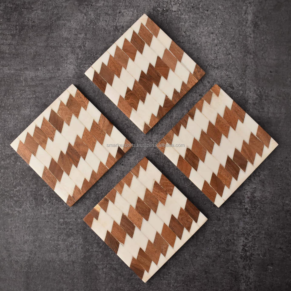 Rustic Resin Wood Coaster Set Round and Square Drink Mat Cup Holder Tea Coaster Dining Room Kitchen Coffee Bar Accessories