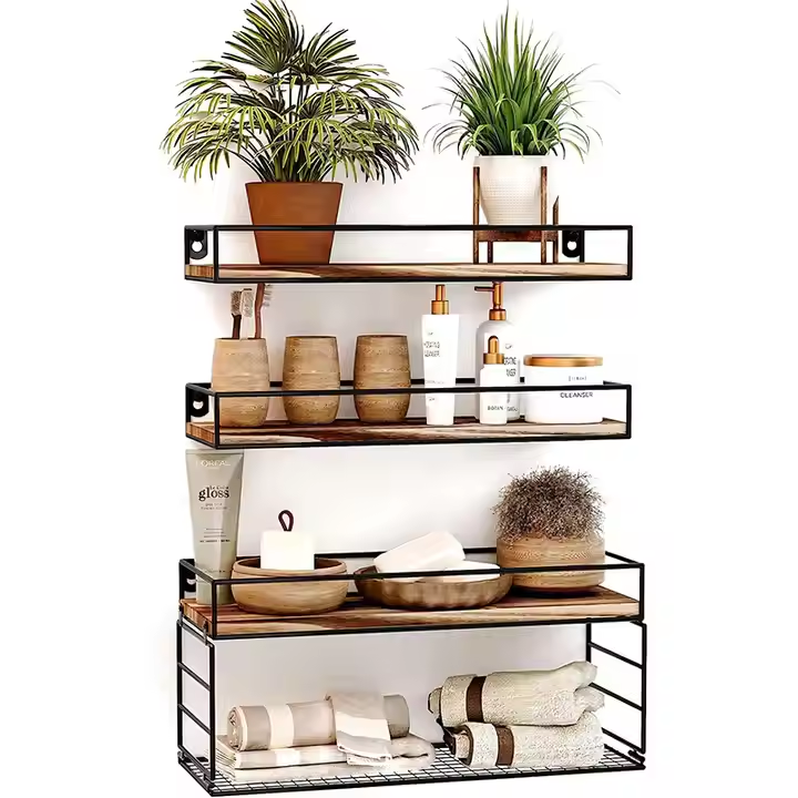 Rustic Retro Modern Vintage Sofa Console Tables Floating Wood Mounted Steel Rack for Tool Storage Rotating Living Room Wardrobe