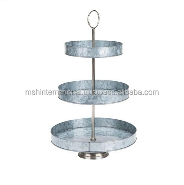 Rustic Round Cake Stand Plate Serving Food Trays Galvanized 3 Tier Serving Tray Cake Display Stand