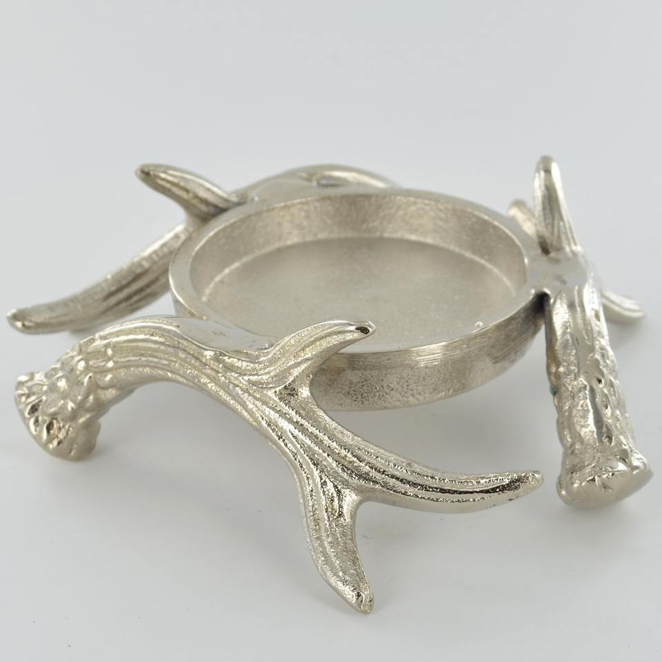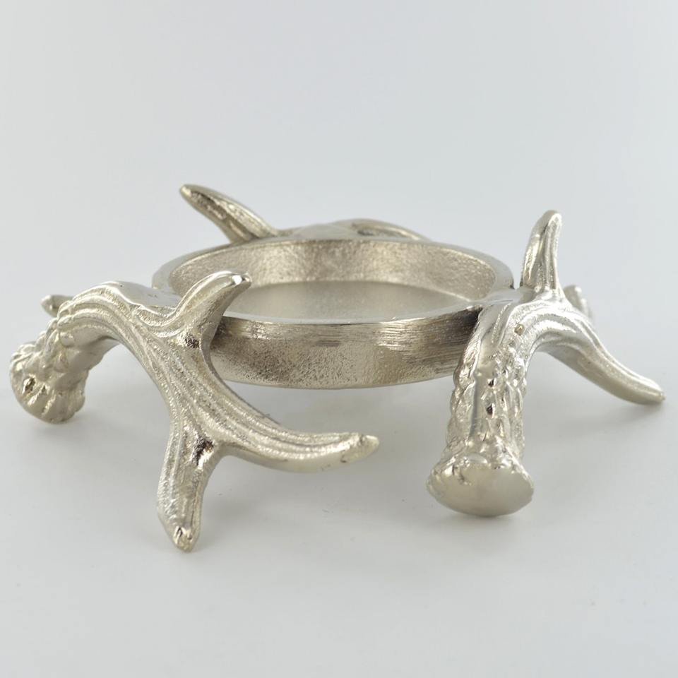 Rustic Silver Antler Pillar Candle Holder Metal Antler Bowl Base Decorative Centerpiece for Wedding Christmas Home Table Decor