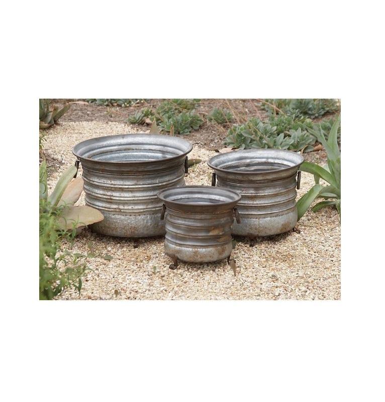 Rustic Silver Metal Vertical Ribbed Design Galvanized Wall Mounted Flower Planter Pots