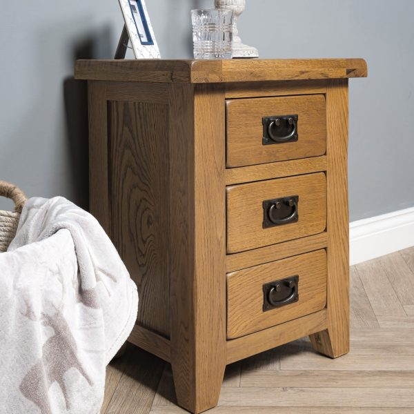 Rustic Solid Oak 3-Drawer Bedside Cabinet