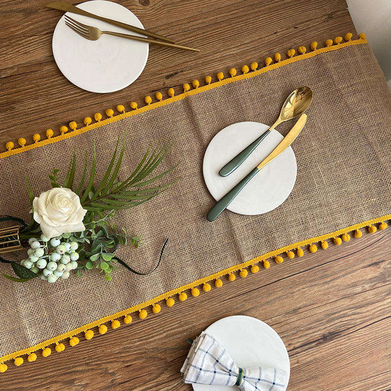 Rustic Style Jute Table Runner – Handmade Natural Fiber Table Cover for Dining Room and Wedding Decoration