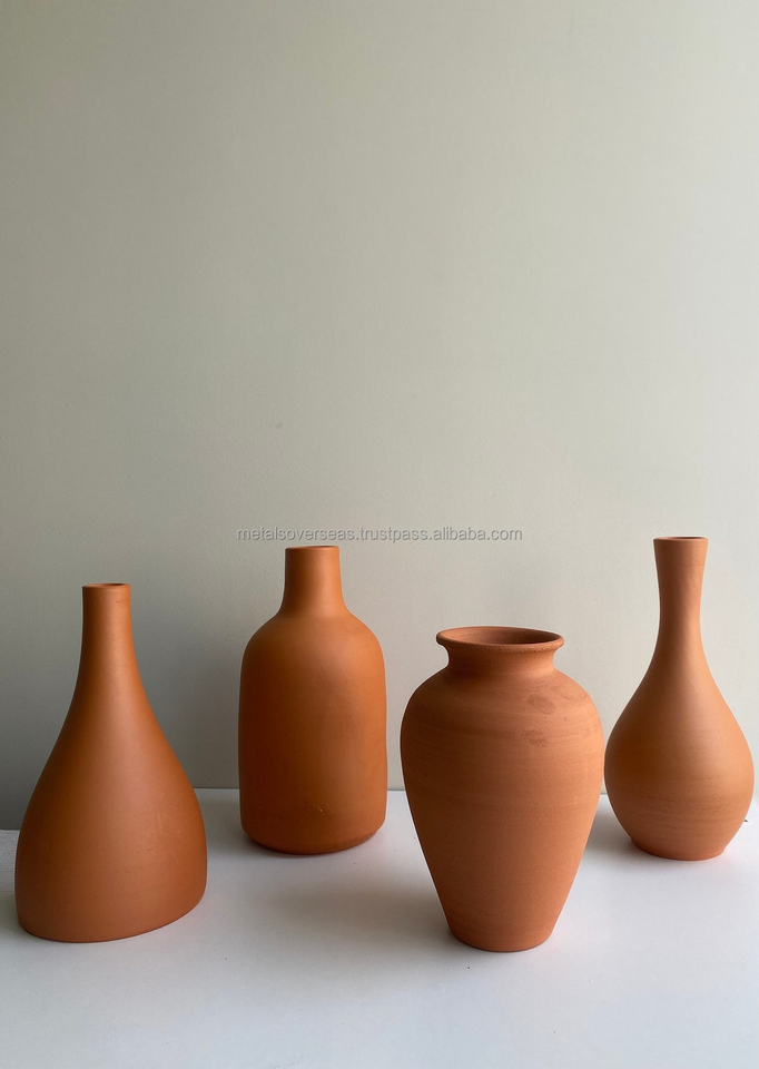 Handcrafted Terracotta Tabletop Vase Rustic Decorative Flower Pot for Home Office and Living Room Decor