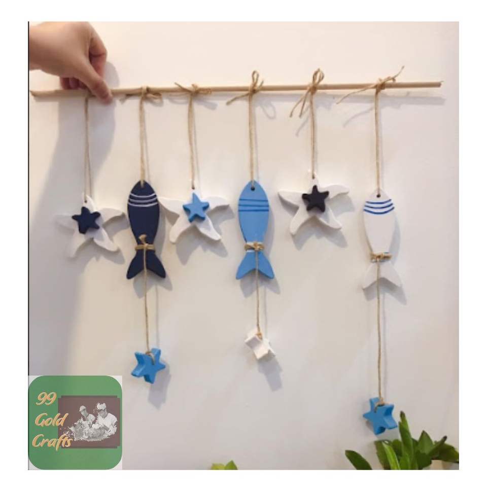 Rustic Vietnam Handmade Wooden Fish, Natural Carving for Home Wall Decor, Kids DIY Painting Toy, Coastal Living Decoration