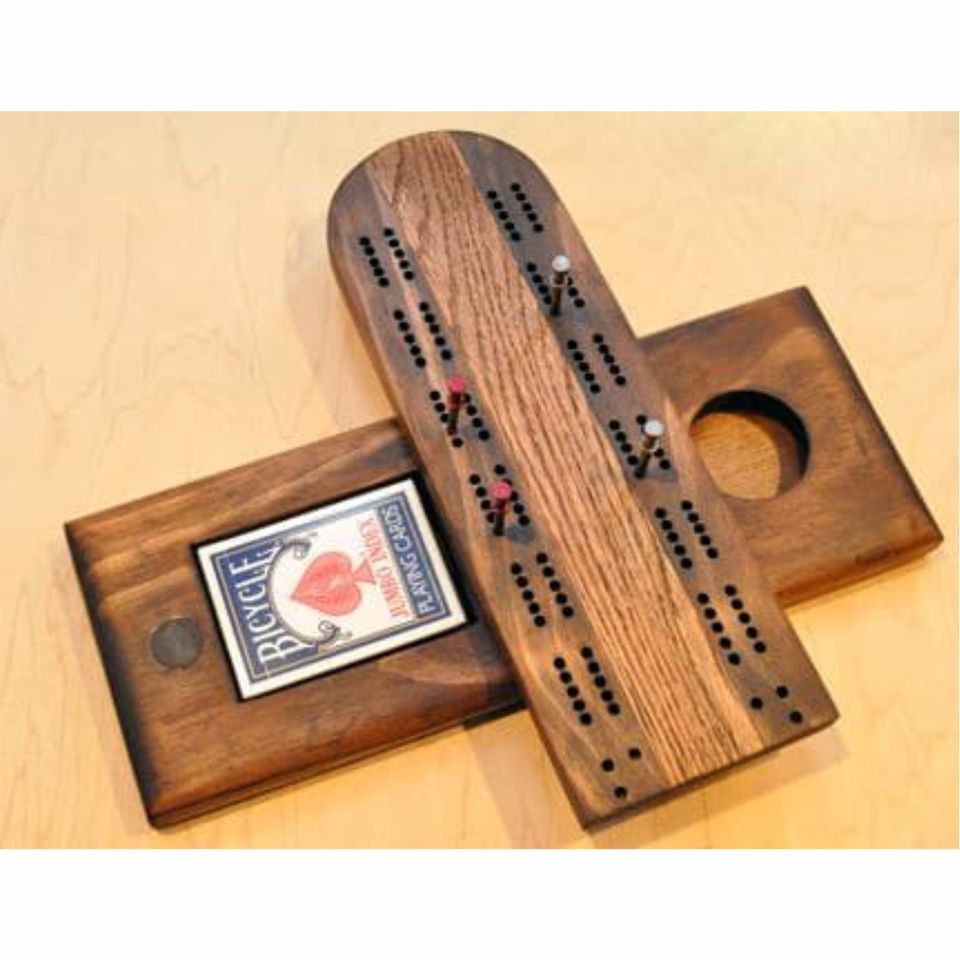Modern Dark Stained Wooden Cribbage Board Jumbo Playing Card Deck Storage Customizable Eco-Friendly Promotional Cribbage Game