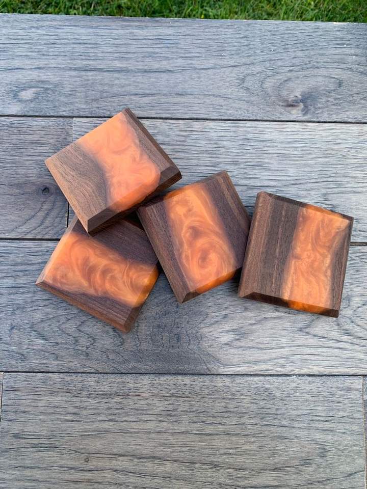Rustic Walnut Resin Coasters for Farmhouse Décor Natural Walnut Wood Epoxy Drink Coasters for Serving