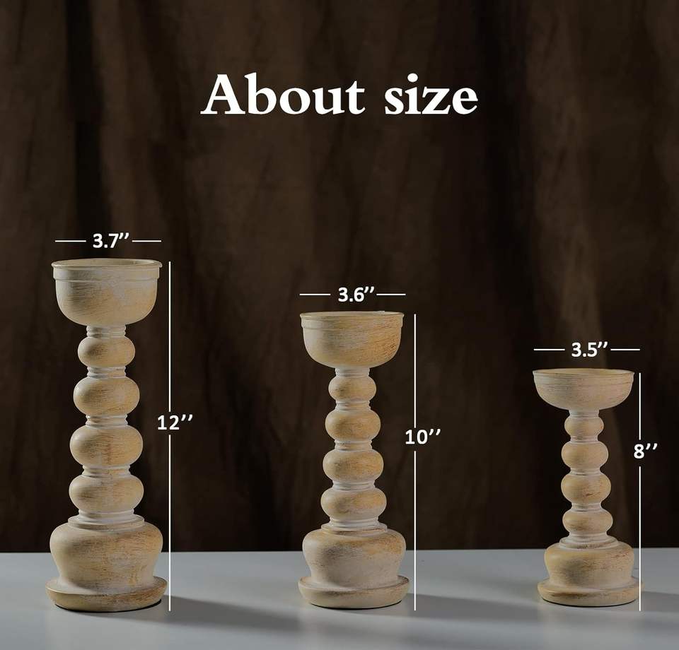 Rustic Whitewashed Wooden Candle Holder Set Farmhouse Style Pillar Stands for Cozy Home Decor and Elegant Rustic Accents Weeding