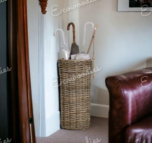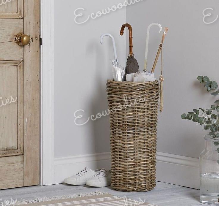 Rustic Wicker Umbrella Stand Rattan Umbrella Holder Cane Stand Stick Stand Hallway Basket Tall Basket Entryway Home Organizer