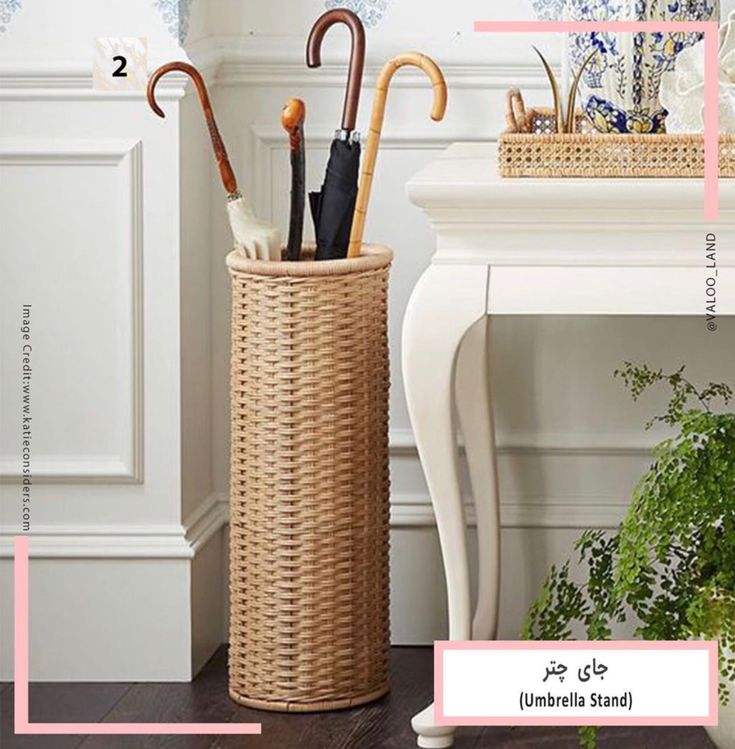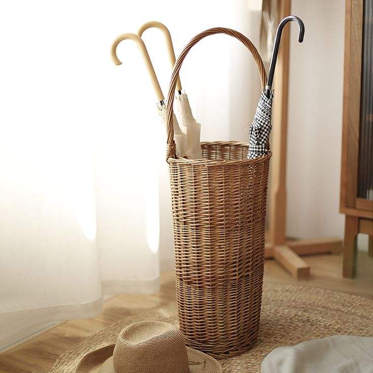 Rustic Wicker Umbrella Stand Rattan Umbrella Holder Cane Stand Stick Stand Hallway Basket Tall Basket Entryway Home Organizer