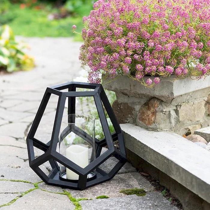 Rustic Wooden Candle Lantern with Black Metal Top Vintage Decorative Candle Holder for Home Garden Patio Indoor Outdoor Decor