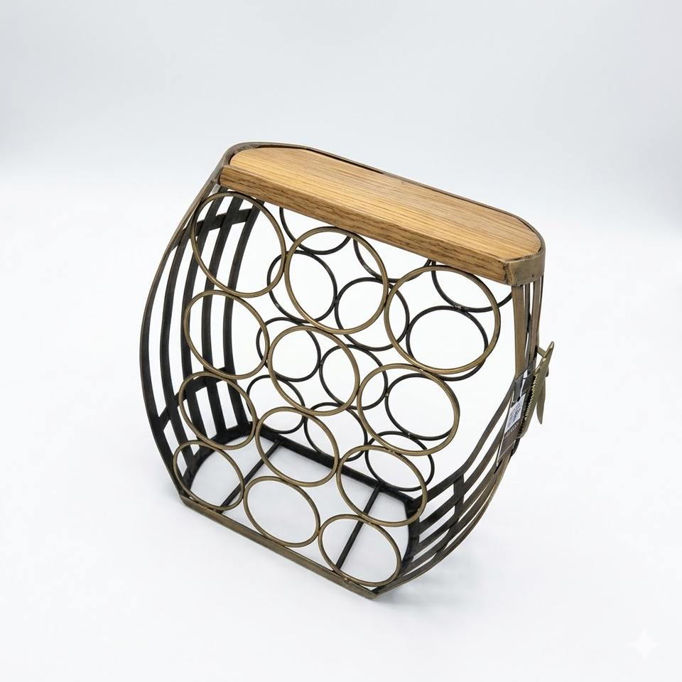 Rustic Wooden Frame Honeycomb Wine Rack Galvanized Metal Inserts Tabletop Wine Holder Farmhouse Style Countertop Wine Storage