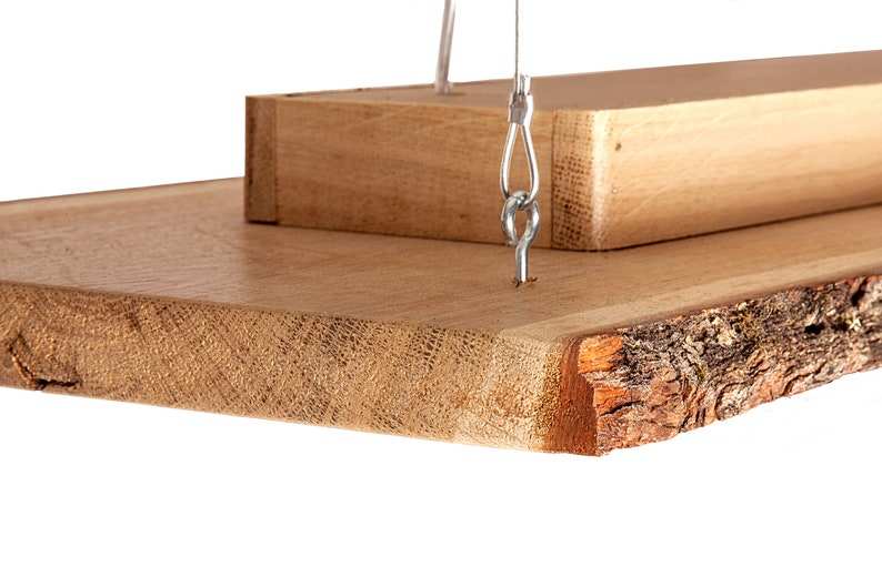 Rustic Wooden Hanging Light Oak With Natural Bark Finish Long Ceiling Lamp For Dining Table Kitchen Island Handmade Wood Fixture