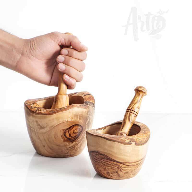 Rustic Wooden Mortar Pestle 32 oz Spice Box with Round Pattern Salt Food Household Grinding Custom Logo Food Grade Eco-Friendly