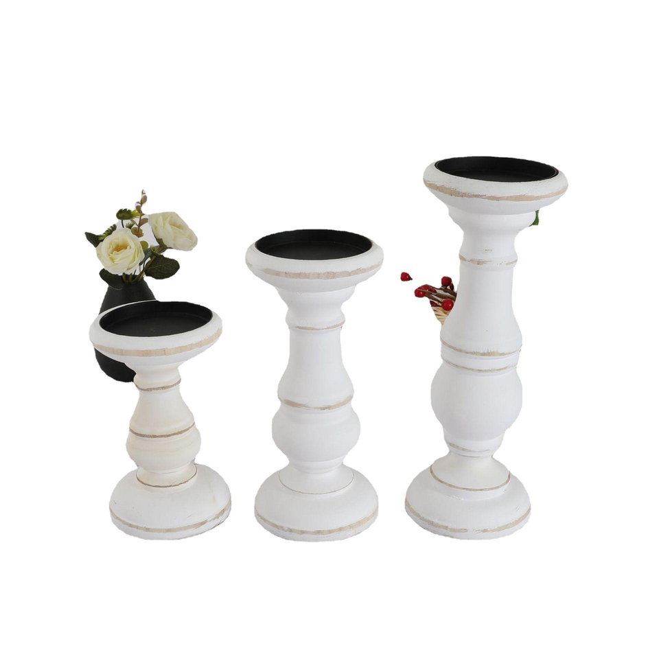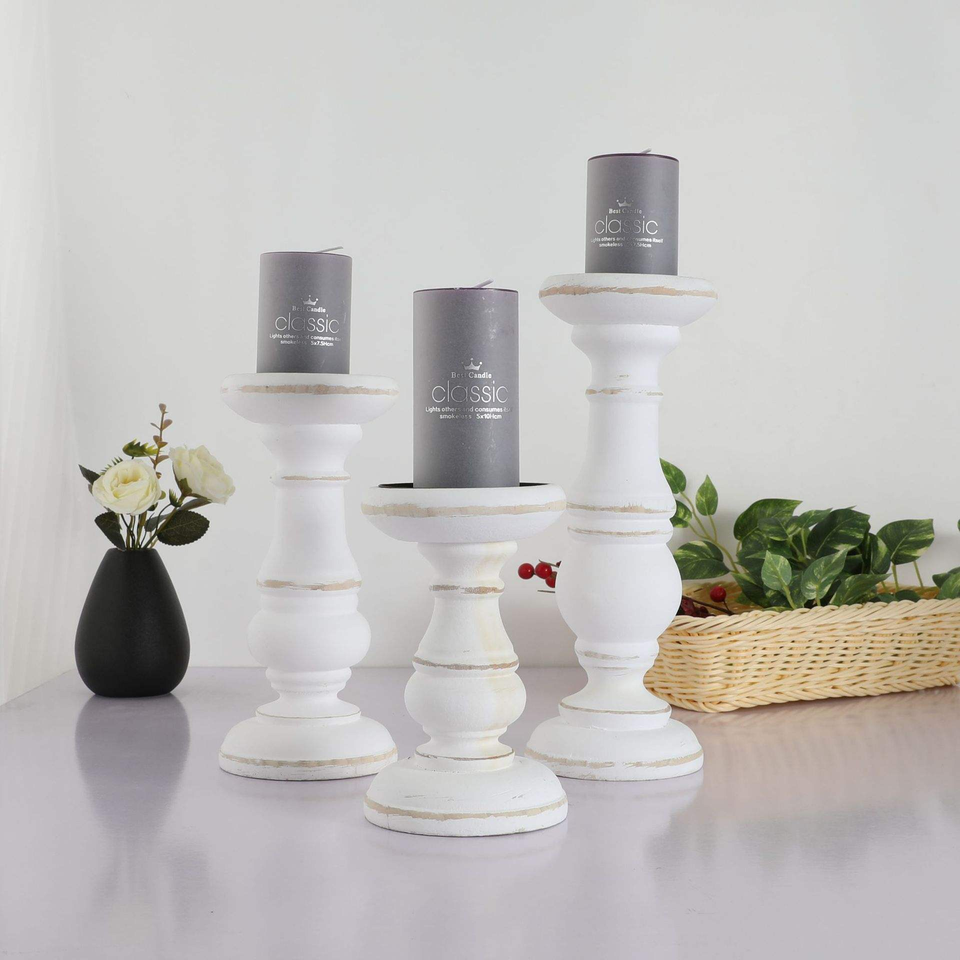 Rustic Vintage Eco-Friendly Wooden Pillar Candle Holder Set 3 White Candle Stick Holder Table Decoration Wedding Home Banquet