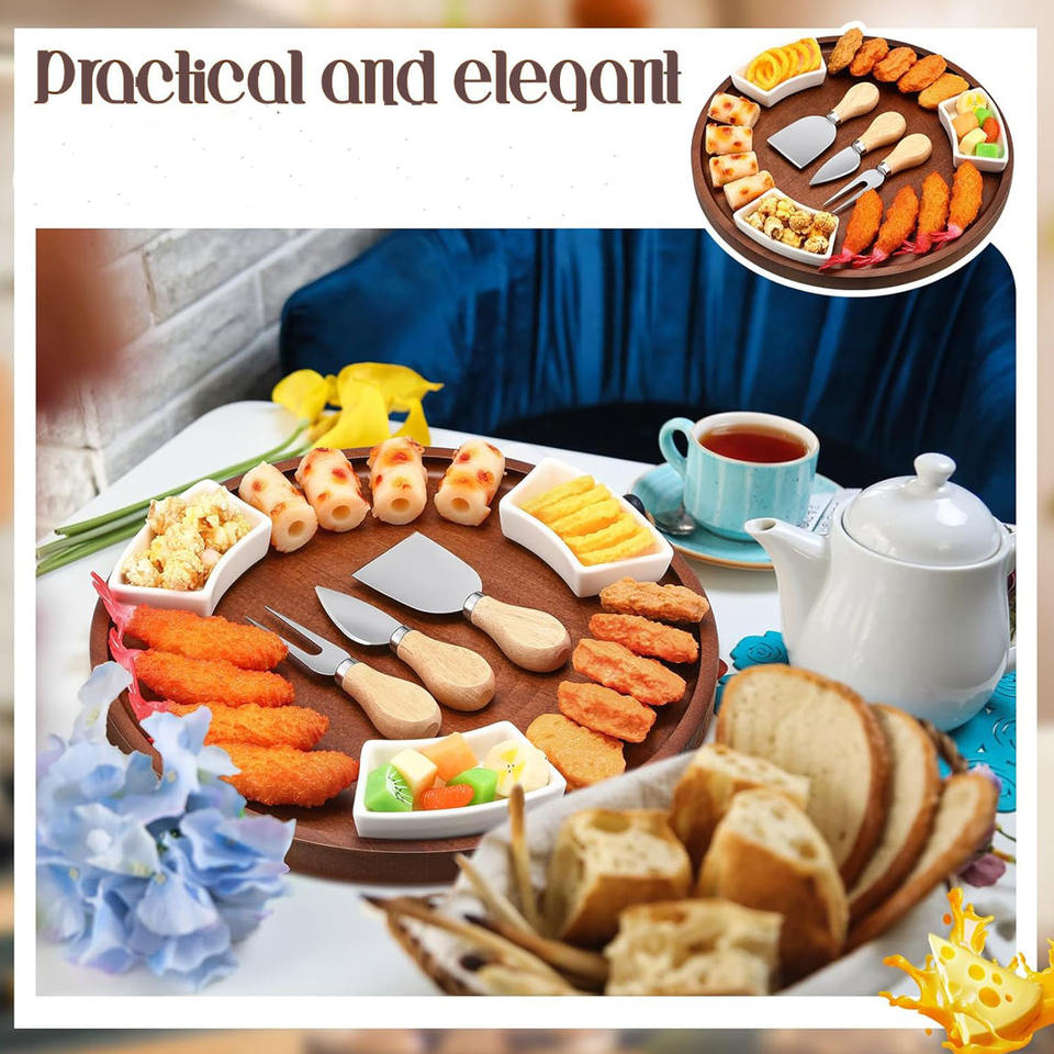 Rustic Wooden Rotating Serving Tray for Kitchen Table Countertop Storage Organizer Display Stand for Home Coffee Bar Restaurant