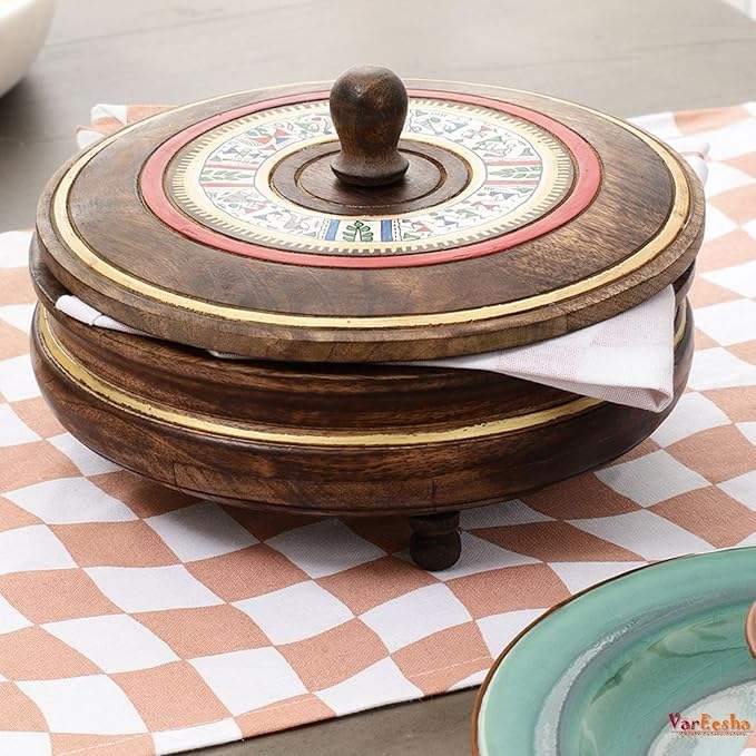Rustic Wooden Roti Storage Box for Warm Chapatis and Easy Serving Eco Friendly Wooden Chapati Box With Beautiful Print