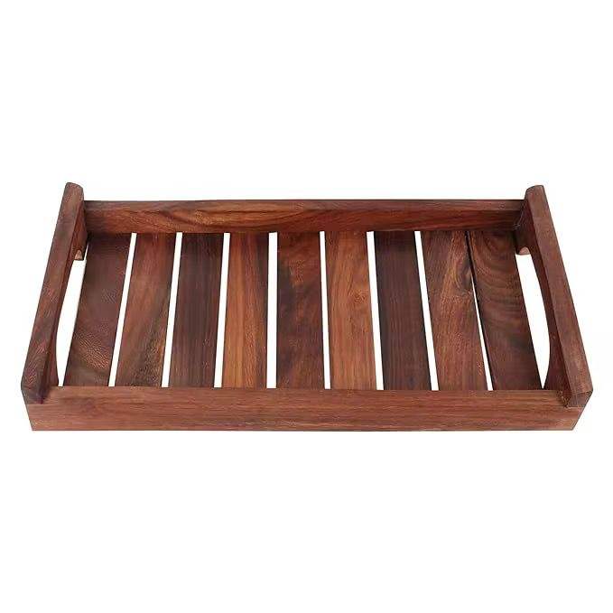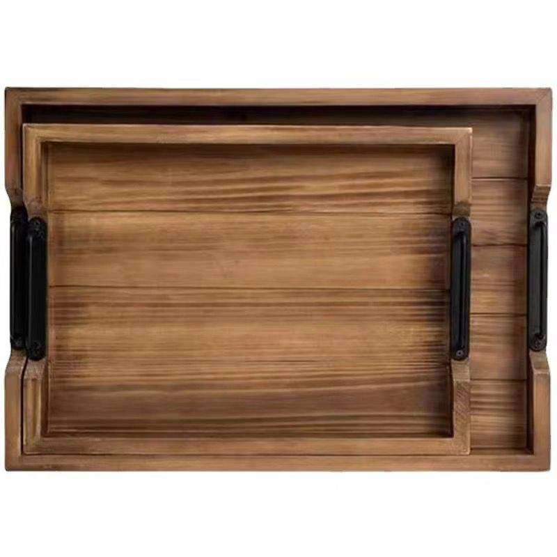 Rustic Wooden Serving Tray with Rope Handles Rectangular Vintage Food Tray for Kitchen Dining Coffee Table Home Decor