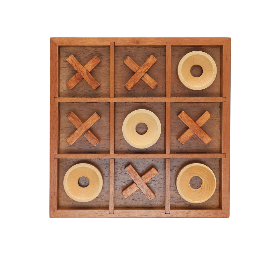Rustic Wooden Tic Tac Toe With Metal X O Pieces Suitable for Coffee Table Display and Playtime Entertainments Purpose From India