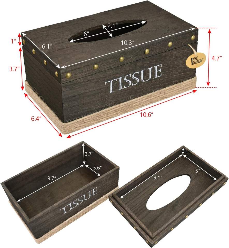 Rustic Wooden Tissue Box Cover Rectangle Wood Facial Tissue Holder Vintage Tissue Box Holder for Bathroom Office