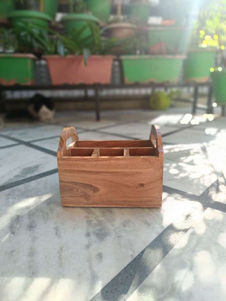 Rustic Wooden Utensils Stand Flatware Cutlery Holder Organizer for Kitchen Dining Spoon Rests & Pot Clips