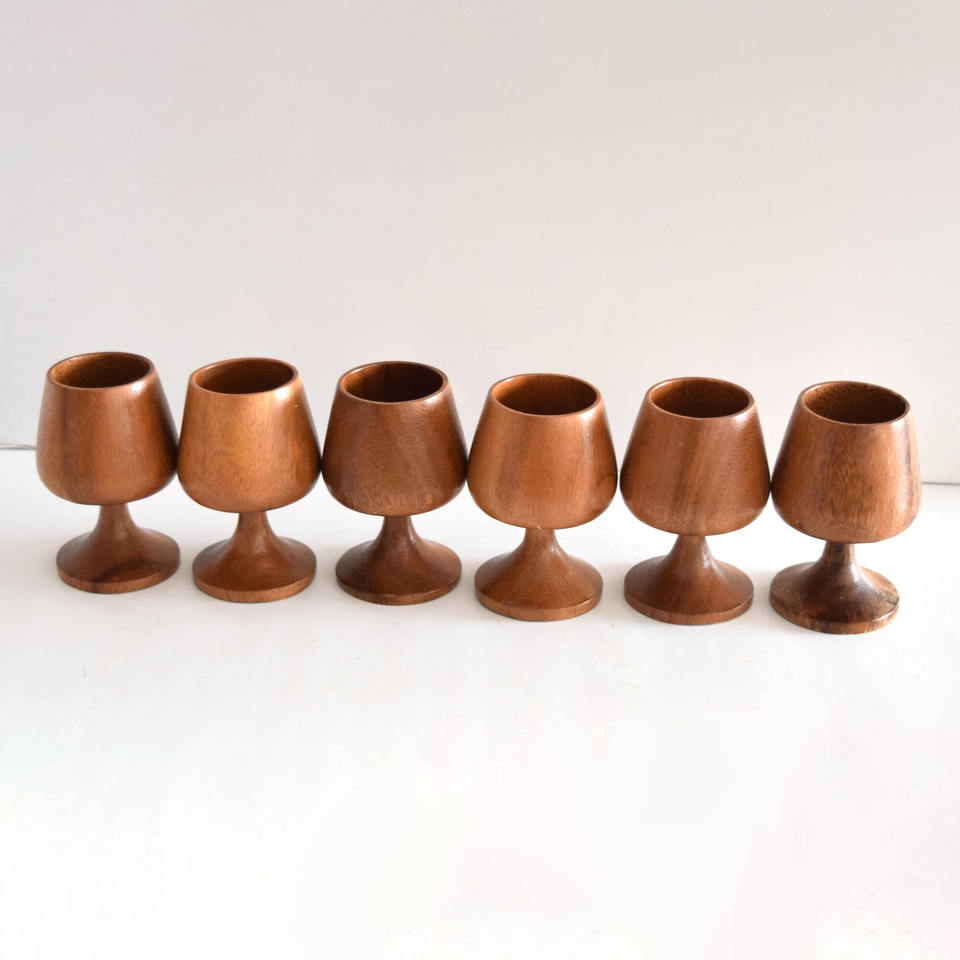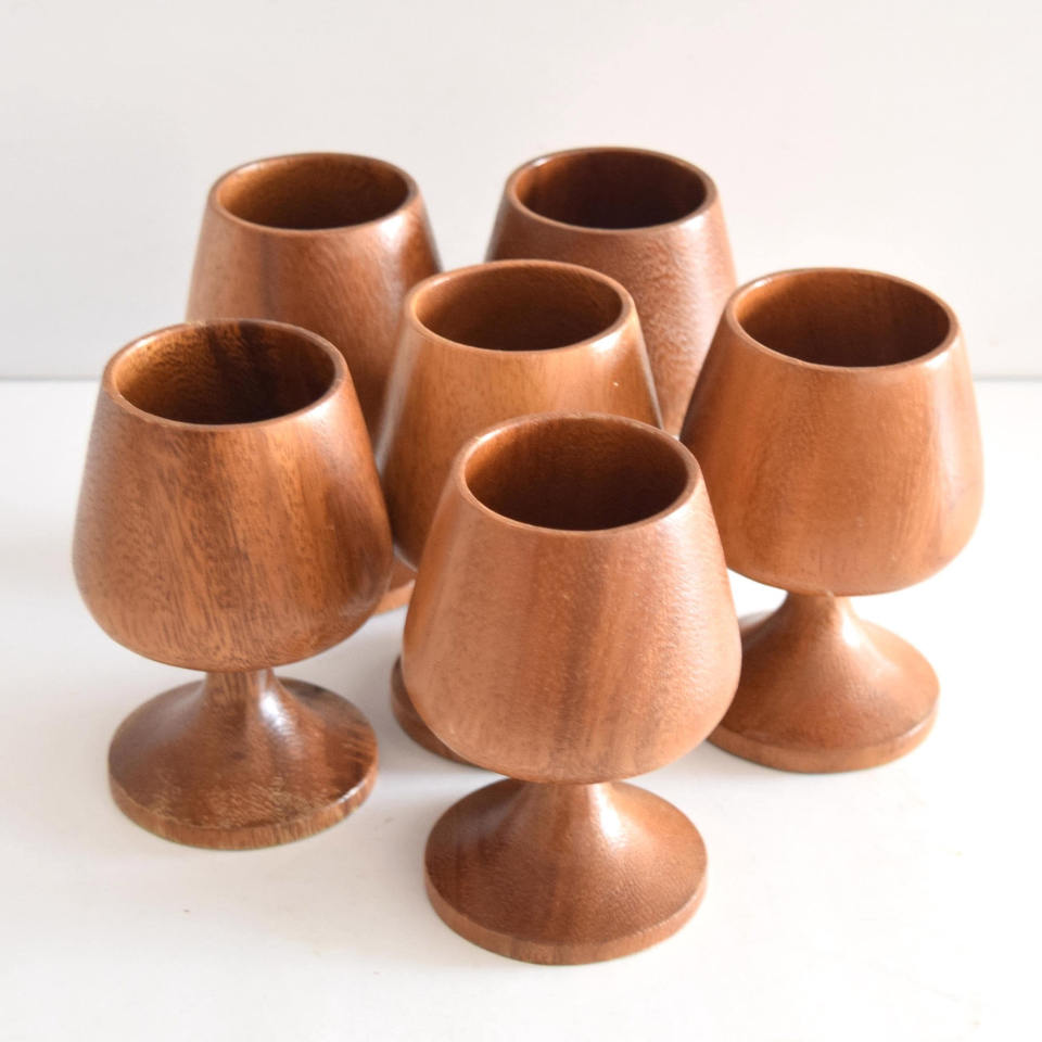 Rustic drinkware set acacia wood cocktail goblet wooden stemware wine glasses eco barista glass