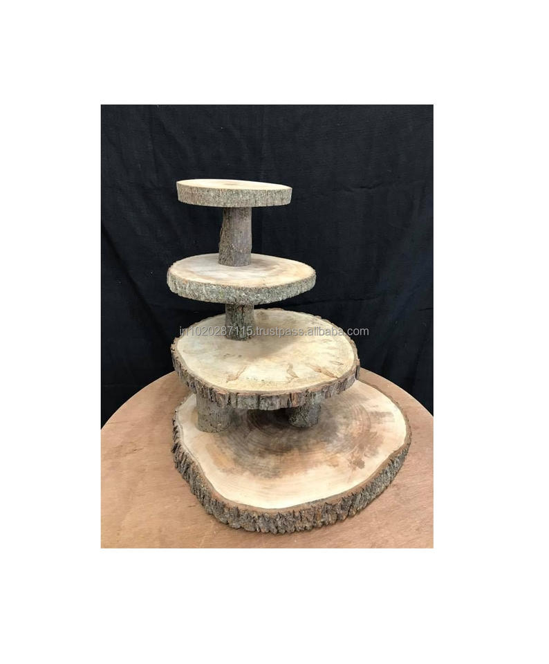 Rustic handcrafted cake stand made from sustainable wood perfect for elegant cake display at home or in bakeries