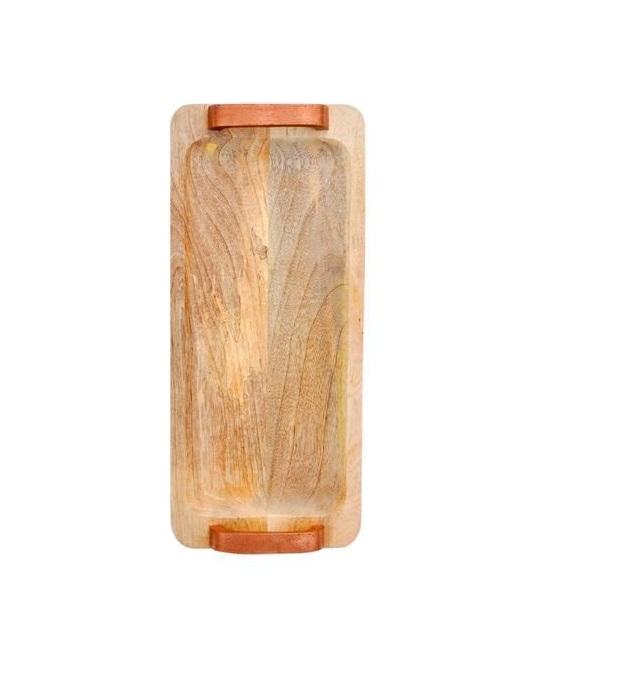 Rustic mango wooden rectangular tray for serving snacks drinks tea coffee breakfast stylish home kitchen accessory