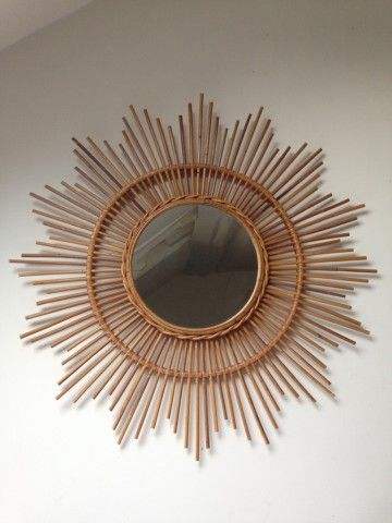 Rustic rattan wall mirror with natural finished for countryside living rooms farmhouse kitchens and vintage inspired interiors